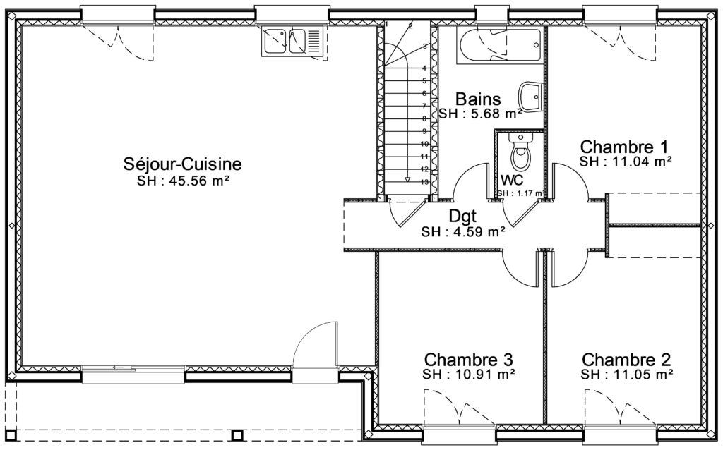 Bâtir Ensemble vous propose le modèle Genêt, un pavillon sur sous-sol proposant 3 chambres et une surface habitable de 90 m².