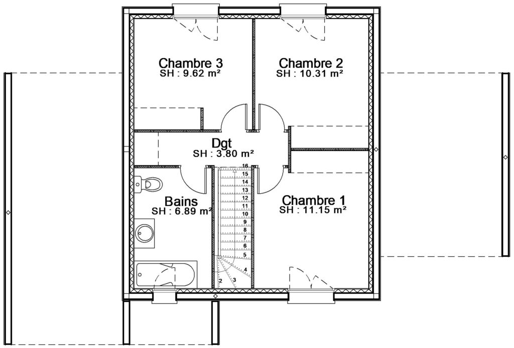 Bâtir Ensemble vous propose le modèle Capucine 100, un pavillon à étage proposant 3 chambres et une surface habitable de 100 m².