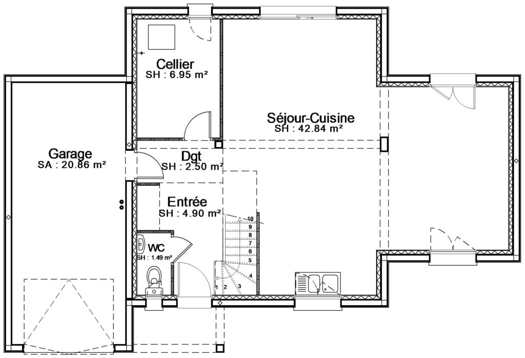 Bâtir Ensemble vous propose le modèle Genêt, un pavillon sur sous-sol proposant 3 chambres et une surface habitable de 90 m².