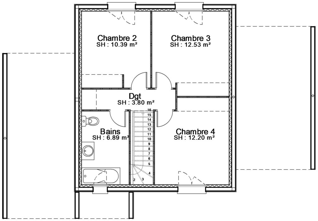 Bâtir Ensemble vous propose le modèle Capucine 113, un pavillon à étage proposant 4 chambres et une surface habitable de 113 m².