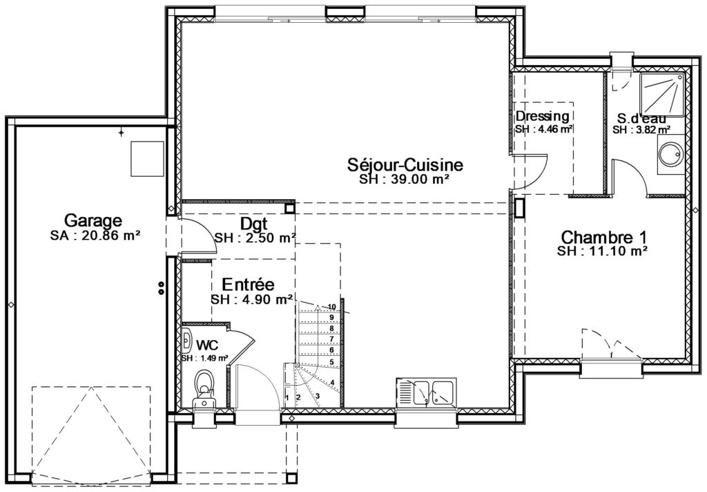 Bâtir Ensemble vous propose le modèle Genêt, un pavillon sur sous-sol proposant 3 chambres et une surface habitable de 90 m².