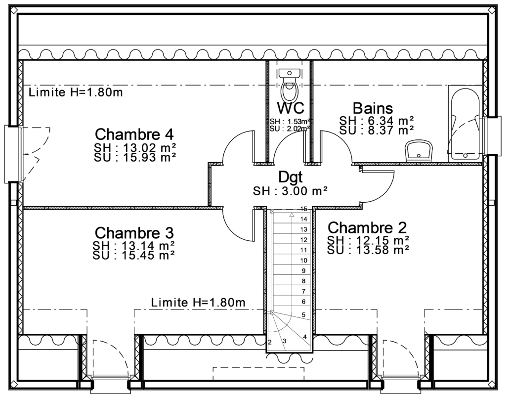 Bâtir Ensemble vous propose le modèle Eglantine, un pavillon à étage proposant 4 chambres et une surface habitable de 113 m².