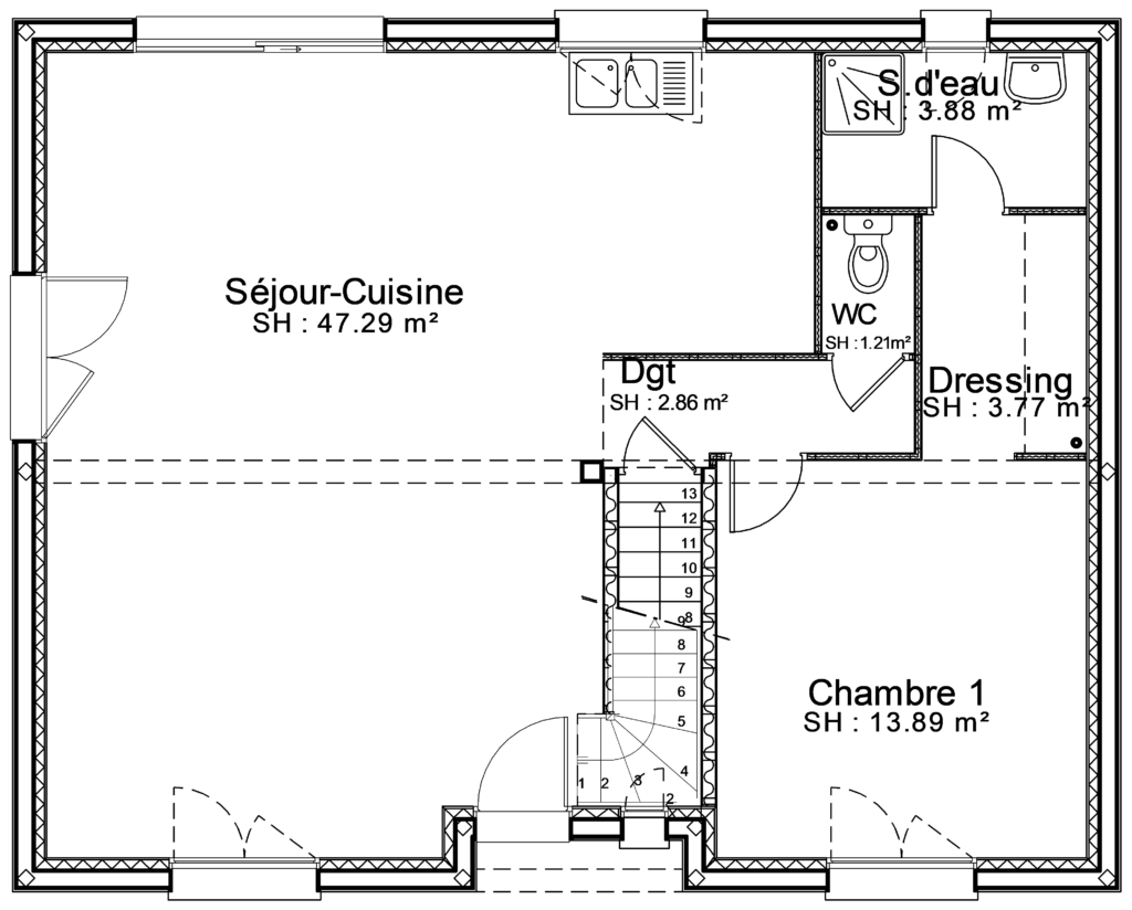 Bâtir Ensemble vous propose le modèle Genêt, un pavillon sur sous-sol proposant 3 chambres et une surface habitable de 90 m².