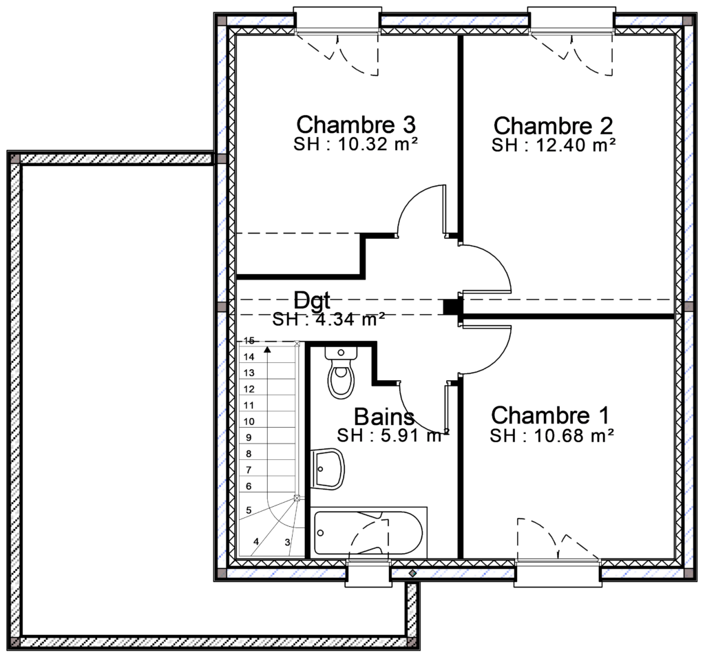 Bâtir Ensemble vous propose le modèle Genêt, un pavillon sur sous-sol proposant 3 chambres et une surface habitable de 90 m².