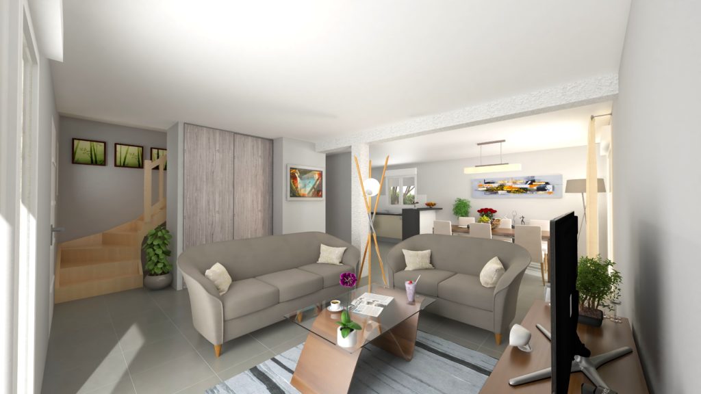 Bâtir Ensemble vous propose le modèle Litchi, un pavillon avec étage proposant 3 chambres et une surface habitable de 90 m².