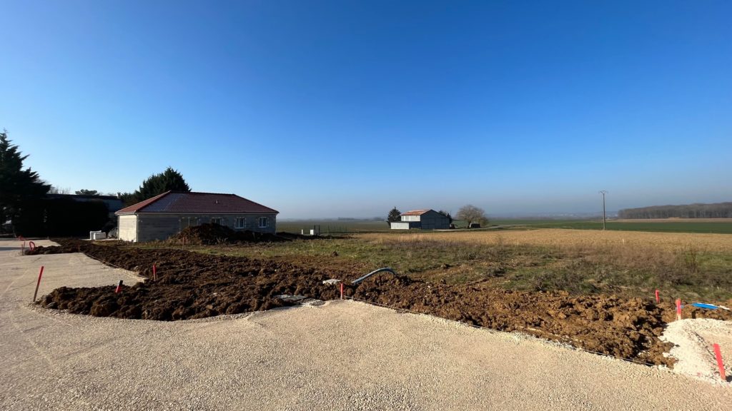 Le terrain est en retrait de rue, donc au calme. Le lotissement est à la sortie du village, dans un secteur pavillonnaire.